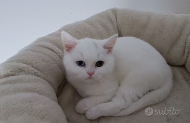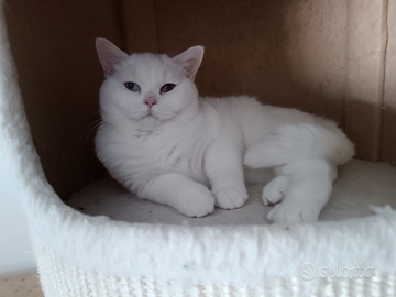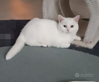 Disponibile british shorthair bianco di quasi un anno,nato e cresciuto in casa e abituato all' uso della lettiera e del tiragraffi., carattere docile e tranquillo, viene consegnato con sverminazione e trattamento antiparassitario esterno effettuato, castrato e con vaccino più libretto sanitario e omaggino