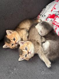 Disponibili splendidi cuccioli di British Shorthair, nati e cresciuti in ambiente familiare con amore e cura. Entrambi i genitori sono visibili e dotati di pedigree certificato. Disponibilità: * 3 femmine * 1 maschio Colorazioni: * Golden Shaded * Silver Shaded I cuccioli saranno ceduti svezzati, sverminati e con primo vaccino, già abituati alla lettiera. Si cerca per loro una famiglia seria e amante degli animali. Per informazioni, foto, contattatemi senza impegno.