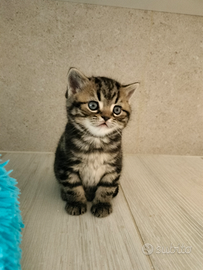 Disponibili alla prenotazione bellissimi cuccioli silver e Brown tabby , nati il 22 ottobre saranno disponibili ai primi di gennaio , già abituati a lettiera e tiragraffi .Il British è un gatto molto tranquillo , dolcissimo ,adatto alla vita in appartamento a bambini e altri animali ,il prezzo è da 1200