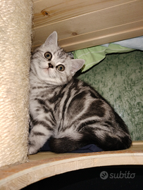 Disponibile femmina Black silver tabby blotched occhi verdi, nata il 22 ottobre, è disponibile a verso metà gennaio, già abituata a lettiere tiragraffi sarà ceduta con;