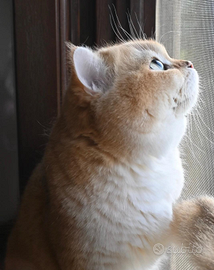 Splendido British Shorthair Golden maschio, occhi verde smeraldo, disponibile per monta.