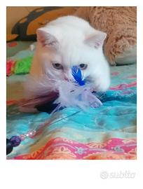 Allevamento amatoriale Fife cede cucciola di 4 mesi di British Shorthair, bianca occhi azzurri carrier point e cannella. La cucciola viene ceduta con pedigree test genitori doppi vaccini e microchip.