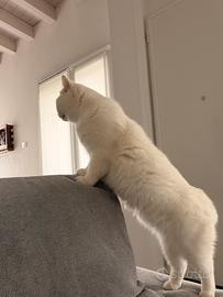 Gatto di 1 anno e mezzo, British Shorthair bianco, sterilizzato e in ottima salute.
