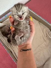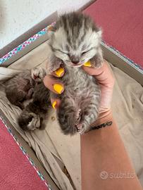 Disponibili 3 bellissimi cuccioli di British shorthair colorazione blu tabby I cuccioli sono nati il 1 Aprile 2026 verranno ceduti al termine dello svezzamento. Prenotabili da ora! Sono due femmine e un maschio, per foto video contattatemi in PV. Colore papà: blu Colore mamma: black silver shaded NO PEDIGREE