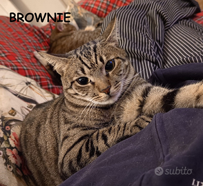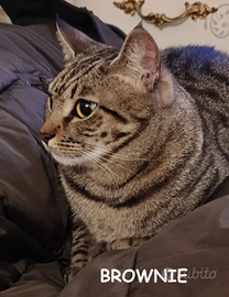 Salve A-mici! Io sono Brownie, una micia tigrata di 1 anno, sono stata recuperata piccina in una situazione di forte pericolo e adesso vivo in una situazione in cui purtroppo a causa della presenza di persone anziane con problemi di deambulazione e alle quali potrei arrecare pericolo, e anche a causa della presenza di altri miei simili, passo molte ore in una gabbia... sono molto triste per questo e nonostante la buona volonta' di chi mi ha recuperato per salvarmi, al momento la mia vita e' questa... vorrei tanto avere una famiglia per me, uno spazio per me dove vivere la mia grande affettuosita' con l'umano. Lo so che non sono particolare non ho gli occhi azzurri, il pelo lungo, il manto pregiato... ma ho tanto amore da dare e sono tanto giovane ancora e sanissima. Chi vuole darmi questa gioia? La micina verra' affidata sterilizzata, testata, vaccinata, spulciata, sverminata e microchippata. NO GIARDINI NE' CAMPAGNE. Info 3202595497