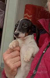 Disponibile femmina di bassotto piebald bianco e nera di taglia estremamente piccola.