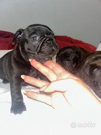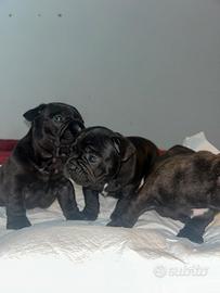 Cuccioli di buldog , due maschietti e una femmina di 30 giorni colore nero in un maschio una macchina bianca ,entrambi i genitori hanno il pedigree , per maggiori informazioni in privato