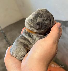 Siamo 7 Splendidi cuccioli di bouldog francese che cercano una famiglia a cui dare tanto amore . Siamo 5 maschi (4 blu merle e 1 blu ) e 2 femmine blu e aspettiamo una famiglia da riempire di gioia , amore e coccole . Siamo nati il 6 aprile e saremo pronti per entrare nelle vostre case il 7 giugno . Quando ci porterai a casa non arriveremo a mani vuote perchè la nostra mamma ci lascerà : -1 kit puppy con un manuale per la guida del cucciolo -il certificato veterinario di buona salute -il primo vaccino -il ciclo di sverminazione completo -l' antiparassitario adatto a noi cuccioli . Come vedete saremo pronti... ci mancano solo due genitori pronti ad accoglierci , meglio ancora se insieme ci sono bambini o altri animali a farci compagnia , tanto noi andiamo d'accordo con tutti! Ci troviamo in provincia di Bergamo precisamente a Brusaporto , al centro equestre Le Valchirie. Scrivici su WhatsApp al 3662206682 per prenotare la sua visita e il tuo cucciolo . Vi aspettiamo numerosi!