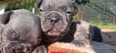 Disponibili cuccioli di bulldog francese di colorazione esotica, 6 maschi e 3 femmine.I cuccioli sono particolarmente belli ma sarete voi stessi a vederlo con i vostri occhi di presenza. Papà colore lilac tan, Mamma grigio blue. I cuccioli verranno consegnati a 60 giorni svezzati svermati con primo vaccino libretto sanitario x info contattatemi in privato 3889504581