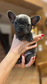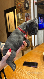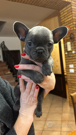 Cucciola di Bulldog francese esotico colorazione blu e con occhi blu , madre merle padre lilac. Nata il 23 novembre verrà consegnata con vermifugo e primo vaccino con libretto sanitario.