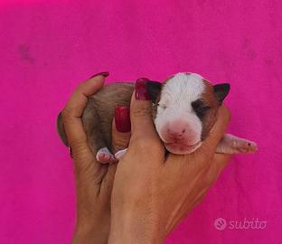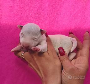 Cuccioli di Bull terrier miniatura/Micro Bull da Allevamento riconosciuto Enci FCI . Disponibile ultimo maschietto Black Brindle White da cucciolata nati il 2 aprile, Maschietto fulvo/bianco e Femmina bianca da cucciolata nati il 15 aprile. Genitori testati per le patologie genetiche della razza. I cuccioli saranno pronti per la consegna non prima dei 60 giorni dalla nascita con sverminazioni- vaccini -microchip -passaggio USL -pedigree Enci -puppy kit . Per informazioni e foto/video chiamare al 3290770419 Silvia