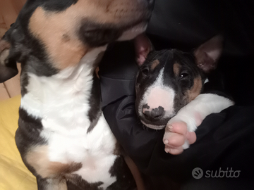 Cucciolo di mini bull terrier maschio tricolore nato il 14.11.2025 viene ceduto con sverminazioni vaccini microchip passaggio Usl pedigree puppy kit.