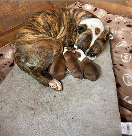 Vendesi bulldog Americano, un maschio ed una femminuccia, hanno 2 mesi, vaccinati , con ottimo pedigree, e microchip. Cuccioli e genitori visibili.