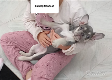 Cucciola di bulldog francese di circa 3 mesi provvista di tutto ciò che serve ad un cucciolo (cuccia,trasportino, due guinzagli collare, pettorina, due ciotole, cappottino, ecc...).