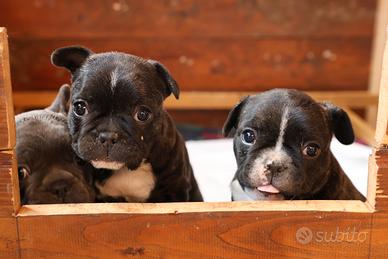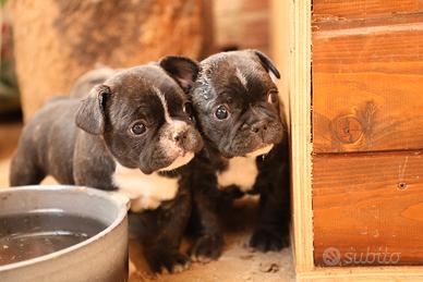 Disponibile maschio di bulldog francese nero tigrato con riga bianca in faccia e zampa bianca. Nato in casa da mamma caille e papà blu Genitori visibili Sverminato, con vaccino e microchip Disponibile dal 20 aprile Si possono vedere senza impegno