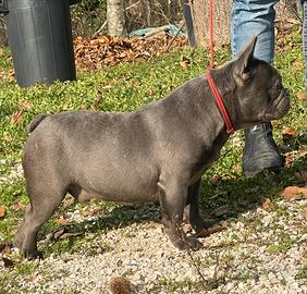 Disponibile stallone maschio di bulldog francese di colorazione blue nato il 18/07/2023. Nato e cresciuto da persone competenti della razza e amanti del loro benessere.