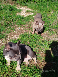 Disponibili maschio di bulldog francese Blu Tan del 2019 e Femmina Blu Fawn del 2020 con 2 parti, con microchip ed iscrizione all'anagrafe canina, possibilmente ceduti insieme, perché sono molto affiatati, nell' ultima foto c' è una cucciola nata dall' ultimo accoppiamento, tutti con occhi azzurri, per qualsiasi informazione altre foto o video mi contattate tramite Subito, Whatsapp o telefonicamente al 3386802345