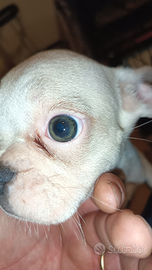 Bellissimo maschietto di bulldog francese esotico total white, con primo vaccino e sverminazione già fatti, pronto consegna cerca famiglia per farsi coccolare.