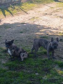 Cedo Coppia di Bulldog Francese,Femmina merle prossima al calore età 1 anno ,6 mesi , Maschio grigio 12 mesi , entrambi godono di ottima salute , abituati con altri animali , se presi insieme ottimo prezzo.No mail,no messaggio,solo contatto telefonico.