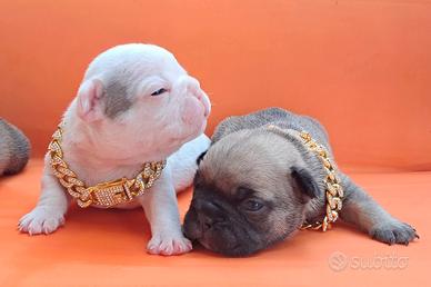 Disponibile alla prenotazione e meravigliose cucciole di bulldog francese nate l'11 agosto...papa isabella tan e mamma fulvi,le cucciole verranno cedute svezzate con tripla sverminazione e primo vaccino con libretto sanitario e visita medica e microcip...genitori con struttura fisica perfetta con possibilità di pagamento rateizzato dal momento della prenotazione a quando la.cucciola verrà ritirata,in omaggio un kit che comprende(collarino,giochino,e ciotola)per maggiori informazioni,video o foto contattami telefonicamente o su whatsapp al 3930419213 o per email prezzo da concordare in privato a discrezione della cucciola che si vuole....si valutano scambi con barboncino toy,bassotto kaninken e Pomerania