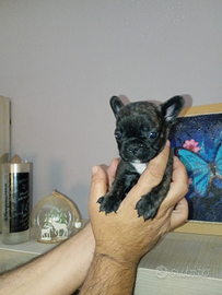 Allevamento amatoriale di bulldog francese dispone di una cucciolata di bulldog francese carrier da padre Flaffy Total blu e madre standard nero bringe.