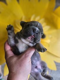 Disponibile in Allevamento Cucciolisole bellissimo cucciolo di bulldog francese nero e bringe che si consegna a due mesi. I nostri cuccioli nascono e crescono in casa con l'amore di tutta la famiglia, sono socializzati con altri cani e gatti e amano giocare con I bambini... Il cucciolo avrà doppia sverminazione, primo e secondo vaccino, libretto sanitario e visita veterinaria, trattamento antiparassitario, microchip con relativo passaggio di proprietà, inclusa consegna che facciamo di PERSONA in tutta ITALIA. ALLEVAMENTO CUCCIOLISOLE anche whatapp al 329 6954062