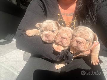 Bellissima cucciolata di razza bulldog francese nati il 9 marzo disponibili solo per le prenotazioni ( cuccioli NON per tutti ) solo per chi desidera un bulldog speciale!!!! Prezzo MOLTO impegnativo.. 1 maschio Isabella tan 1 femmina Isabella merle tan I genitori non superano i 10 kg testati clear I cuccioli saranno consegnati fine maggio completi di 2 vaccinazioni, microchip, pedigree ibc e certificato di buona salute i nostri cani non vivono in box vivono in casa in famiglia . Non sono cuccioli per tutti e non sono economici!!!!!!AL SUD non vendo Ci trovate su Instagram lovebully_ Oppure Facebook Silvia amin I cuccioli non sono in regalo