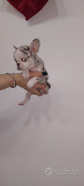 Vendo ultimi 3 maschi di bulldog francese esotici un blu fauw con occhi celesti e 1 merle con fauw e bianco con occhi celesti e 1 merle grigio chiaro e scuro con occhi celesti...x ulteriori foto e informazioni contatta al 3401680757 il prezzo è indicativo vengono consegnati con libretto sanitario sverminazione vaccino e microcip i cuccioli sono già svezzati a abituati alla traversa