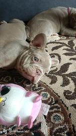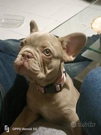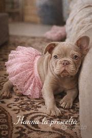 Femmina di Bouledogue Francese esotico New Shade Isabella tan nata il 11/01, disponibile con libretto sanitario, vaccini completati, esame feci negativo ai parassiti, trattamento antiparassitario già eseguito e microchip. La cucciola è già abituata alla traversa e a sporcare anche fuori casa, cammina tranquillamente all'esterno ed è stata seguita con puppy class, avendo già ricevuto l'educazione base che si impartisce a un cucciolo per una corretta gestione in famiglia. Carattere dolce, equilibrato e molto affettuoso. Cresciuta in ambiente amatoriale con massima attenzione alla salute e alla socializzazione. Genitori testati su DNA per le principali patologie di razza. Adatta a famiglie con bambini o a chi cerca una compagna di vita presente e affettuosa. Colorazione New Shade Isabella tan ottenuta dalla combinazione di più loci genetici (dd, bsbs, coco, atat/ata), estremamente rara e difficile da selezionare. Per correttezza si precisa che questa colorazione non è riconosciuta dalla FCI, quindi la cucciola non è destinata ai circuiti espositivi ufficiali ENCI, ma resta una splendida compagna di vita allevata con cura e attenzione in allevamento amatoriale con oltre 25 anni di esperienza.
