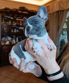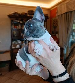 Disponibile cucciola di bulldog francese blue brindle pied, nata in casa il 21/01 da genitori di mia proprietà e visibili. Abituata all'uso della traversina, ben socializzata, va d'accordo con altri animali. Carattere equilibrato, dolce e affettuoso, adatto anche a famiglie con bambini. Verrà ceduta con ciclo sverminazioni completo, primo vaccino e libretto sanitario. Per altre informazioni contattare