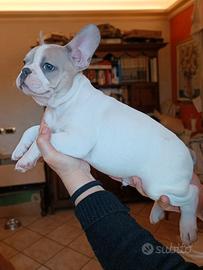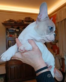 Disponibile cucciolo di bulldog francese blue fawn pied nato il 21/01 in casa da genitori di mia proprietà e visibili. Abituato all'uso della traversina, va d'accordo con altri animali, ha un carattere dolcissimo, tranquillo ed effettuoso adatto anche a famiglie con bambini. Verrà ceduto con sverminazioni eseguite, primo vaccino e libretto sanitario. Per altre informazioni contattare