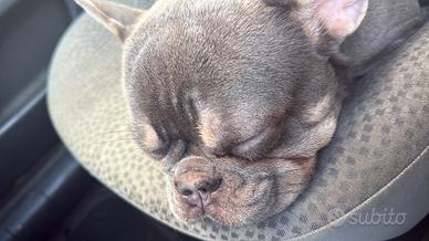 Cedo bulldog francese maschietto di appena 12 mesi, bellissimo cucciolo da compagnia per grandi e piccini. La mamma è una bulla blue e il papà lilac tan fluffy quindi il cucciolo è portatore di fluffy. Ciclo dei vaccini completato, libretto sanitario in regola e microchip (da cambiare proprietario al momento della consegna). Cucciolo allegro, mangione e con tanto amore da dare. Abituato a fare i bisogni fuori Abituato ad altri cani Abituato a bambini grandi e piccini Astenersi perditempo Solo per veri intenditori della razza
