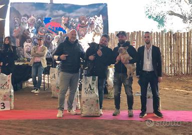 Disponibile per la monta stupendo esemplare di bulldog francese blue con test genetici per le principali malattie con DNA depositato , test strumentali come patella ed ecocardio , soggetto molto compatto come pochi , all'ultimo show a Roma è stato premiato come miglior esemplare della manifestazione , già padre di diverse cucciolate , dando molto della sua genealogia ai cuccioli .