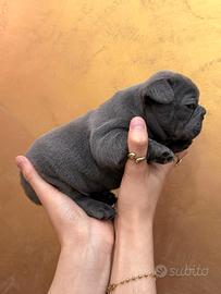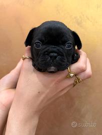 Disponibili splendidi cuccioli di Bulldog francese nati il 24 marzo, cresciuti in ambiente familiare con tanto amore e attenzione. ? Disponibilità: 1 maschio colore grigio 1 femmina nera tigrata 1 maschio total black I cuccioli verranno ceduti già: ? Vaccinati ? Sverminati ? Con microchip ? Completi di libretto sanitario Sono cuccioli sani, giocherelloni e abituati al contatto umano, perfetti per la famiglia.. ? Per maggiori informazioni o foto/video, contattami in privato.