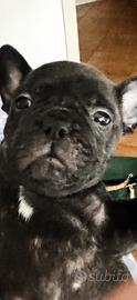Vendesi ultimo bulldog francese nero maculato con macchie bianche su petto e zampette anteriori. Parto naturale da genitori di mia proprietà e visibili, ha allattato naturalmente. Nati a fine giugno 2025. Abituato alla traversa, docile comportamento grazie alla mamma che li ha seguiti per 4 mesi. Solo referenziati. Prezzo affare, la mamma è esotica Blue. Vaccini, sverminazione e libretto, seguiti sempre fin dalla nascita dal veterinario. Ottima salute. Pedigree su richiesta