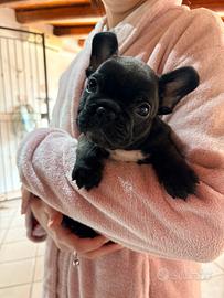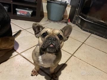 Si vende splendido maschietto di due mesi di bulldog francese. È molto giocherellone e amorevole. La mamma è di colore beige (in foto) di misura nana, con pedigree, il papà è colore blue (in foto). Per info contatta