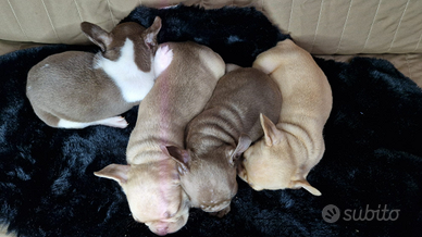 Pronti per la prenotazione meravigliosi cuccioli di Bulldog Francese, sono quattro maschietti, colore Isabella New Shade e Isabella Rojo, ad oggi hanno sette settimane.