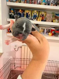 Bulldog francese Femmina Blu e bianca Nata 25 aprile ore 7:40 Prenota bile e ritiro dopo effettuati vaccini ,apertura libretto , pedigree , sverni nazione e svezzamento Colori rarissimi Prezzo non trattabile Prenotabile con un acconto di 200? Per vederli senza impegno anche tramite whatsapp o per foto aggiuntive