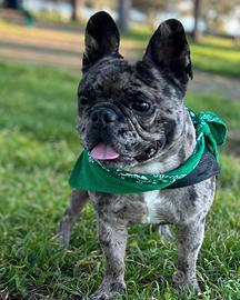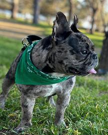 Soggetto colorazione Merle, pocket, testa importante, dentatura perfetta, coda quasi assente.