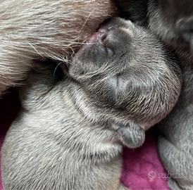 Con grande gioia presentiamo una splendida cucciolata di Bulldog Francese colorazione blu, nati l'8 dicembre, nel magico periodo dell'Immacolata Concezione, avvolti fin dai primi giorni dall'atmosfera calda e speciale delle festività natalizie.