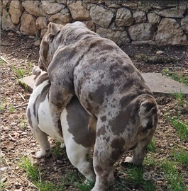 Poseidone. Stallone Bulldog Inglese esotico isabella merle figlio di padre choco merle tan e madre blue tan pedigree AKC ed ABKC disponibile per monte soggetto di colore e tanta tanta struttura in foto anche i genitori cell 3938271963