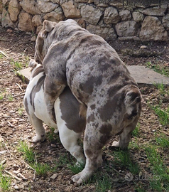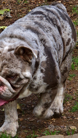 Stallone Bulldog Inglese esotico isabella merle figlio di padre choco merle tan e madre blue tan pedigree AKC ed ABKC disponibile per monte soggetto di colore e tanta tanta struttura in foto anche i genitori cell 3938271963