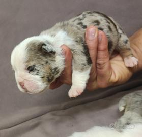 4 femmine e due maschi, nati il 18/02, saranno disponibili per aprile. Vaccini, svermimazione, chip, visita veterinaria. Colori esotici: lilac e blu merle, choco, black tricolor. Genitori visibili.