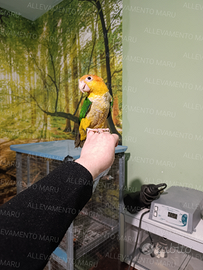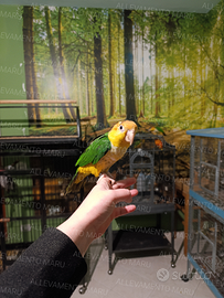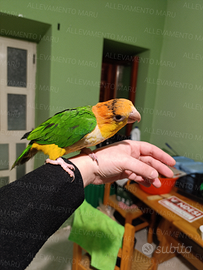 Disponibile caicco testa gialla 2025 allevato a mano. Anellato e con cites I caicchi sono pappagalli molto curiosi e coccoloni, e rispetto a molte altre specie sono meno rumorosi