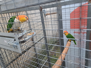 Cedo coppia di caicco testa gialla , maschio 2019 femmina 2020 , ha riprodotto per la prima volta quest'anno , in regola con documenti.