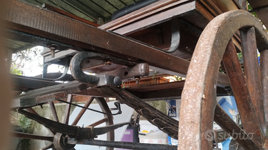 Calesse antico tutto legno,con balestre che non se ne trovano più,ruote da un metro Buone condizioni Tel 3342445287
