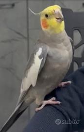 Calopsite giovane allevato a mano. Canta già Qualche canzoncina e dice il suo nome. Info in privato