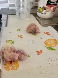I piccoli hanno attualmente circa due settimane e saranno pronti a fine mese. Sono allevati con cura per abituarli al contatto umano e renderli docili e affettuosi.