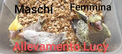 Allevamento Lucy dispone di maschi e femmine di calopsite allevate a mano. I soggetti si cedono con modello Asl e certificato medico, scheda alimentare e certificato di sessaggio