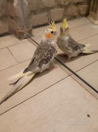 Vendiamo 2 fratellini Calopsite di genitori allevatiba mano, sono stati imboccati a mano per far si che creassero un rapporto molto bello con l'uomo...hanno 3 mesi,prezzo cadauno